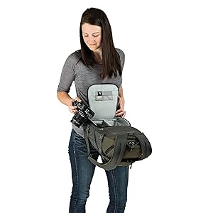 また、カメラバッグを地面に置くことなくカメラを取り出すことができる仕様になっているので、バッグそのものを傷めることもありません。
